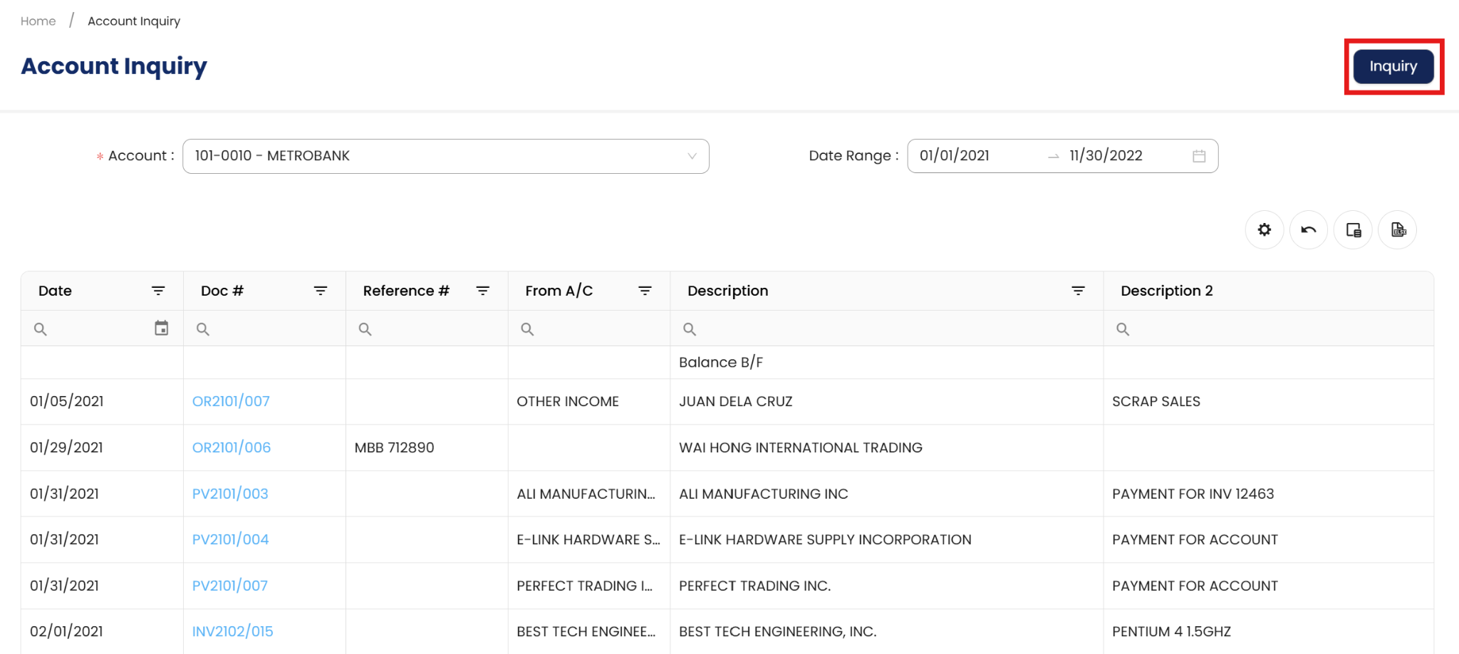 For example, a finance assistant verifying expenses may use Account Inquiry to focus only on transactions recorded under a specific GL account. By filtering the view: