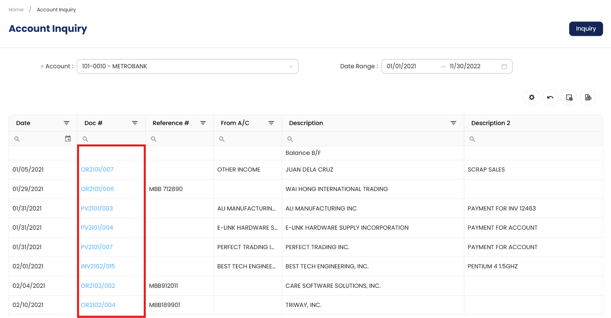 Note: You can click on the Doc # link in the Actions column to view the source document and transaction details.