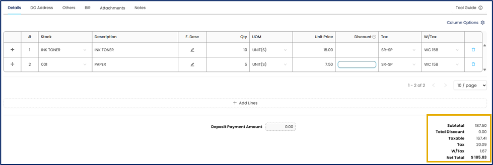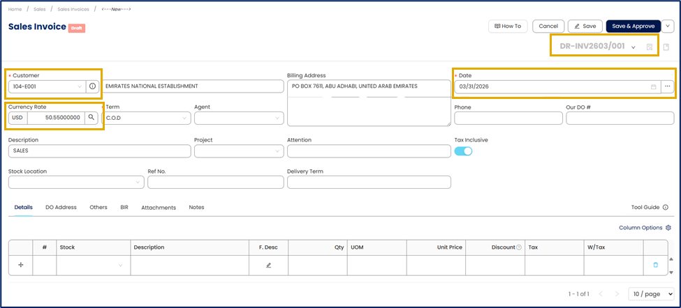 Note: The system will automatically populate other details based on the customer’s default set-up such as term, but you can change it if needed.