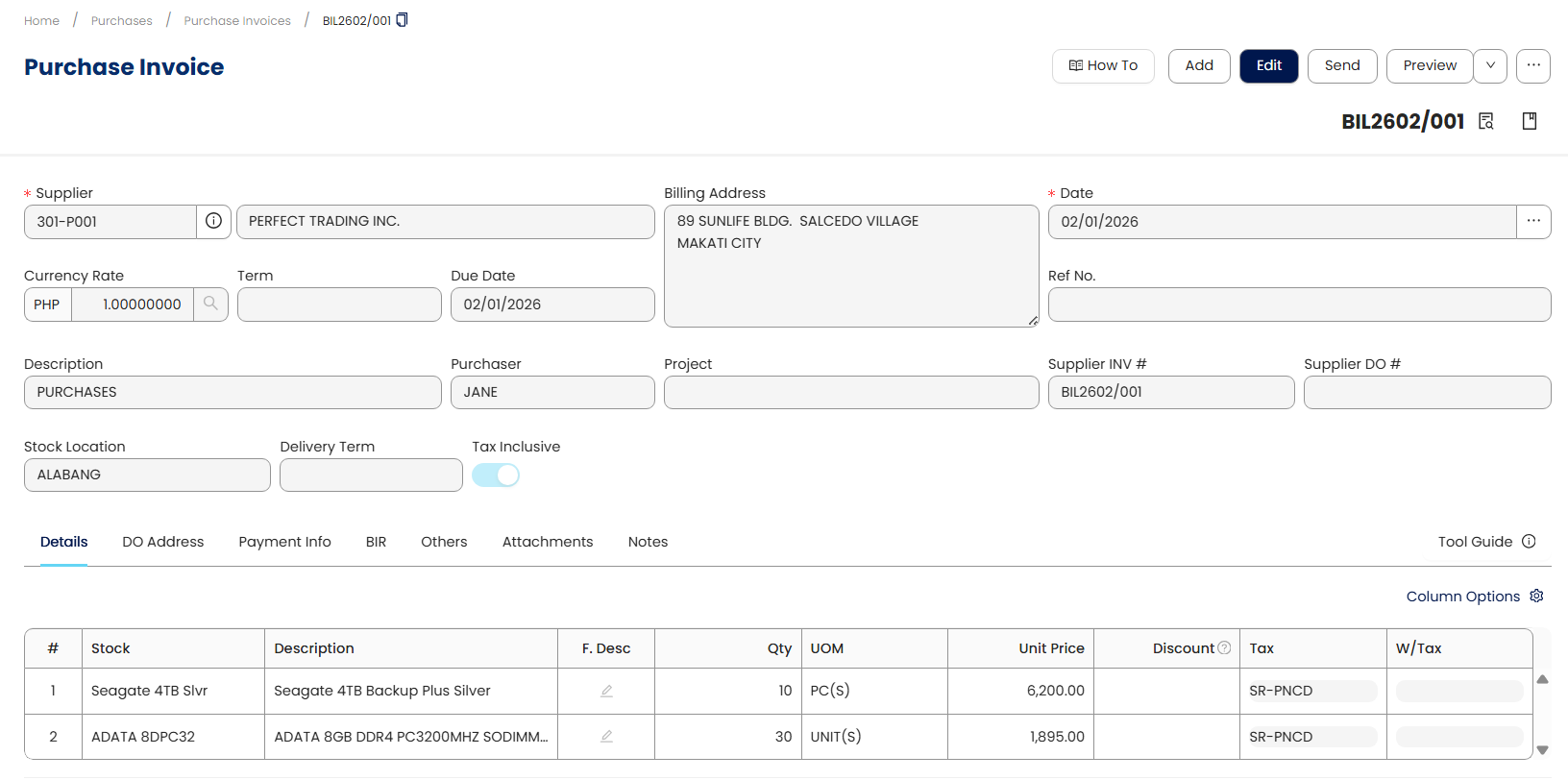 This form consolidates all outstanding (floating) transactions for a selected supplier, enabling accurate and efficient reconciliation of payables.
